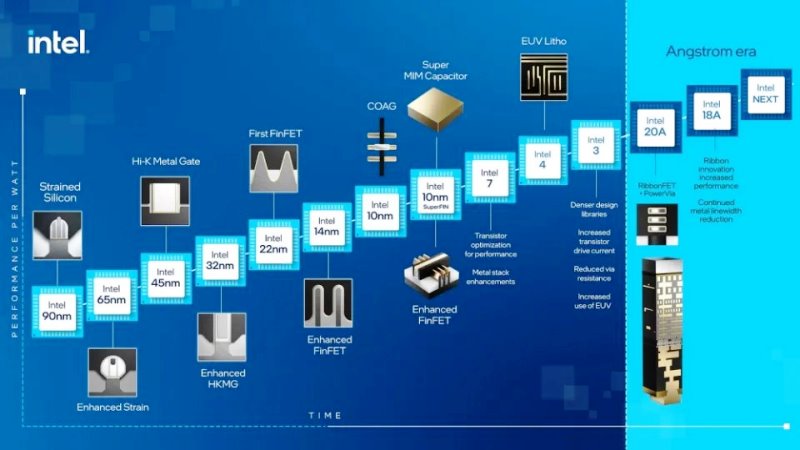 To achieve a 1 trillion-scale transistor number, Intel believes that the current FinFET fin field effect transistor design will face limits, so it will enter the Intel 20Å (Angstrom) process for mass production in 2024, and will abandon the use of FinFET design. , Turning to the recently announced RibbonFET wrap-around gate design, and with the PowerVIA back power supply mode, more transistors can be accommodated in the chip, thereby achieving a 1 trillion-scale transistor configuration.